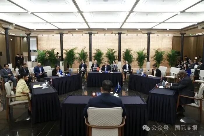 11月4日,中国商务部部长王文涛与密克罗尼西亚联邦资源和发展部部长秋永,基里巴斯旅游、商务、工业和合作部部长里特,瑙鲁磷酸盐矿部部长托马,瓦努阿图外交、国际合作与对外贸易部部长阿蒂,斐济贸易、合作社、中小微企业和通信部常秘阿里举行集体会见。会见后,王文涛部长与五国代表分别签署《提升经济伙伴关系框架协定》。