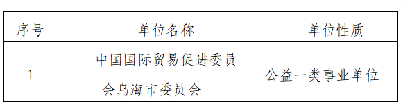 中国国际贸易促进委员会乌海市委员会,规范简称为乌海市贸易促进会,列群团序列管理,机构规格正处级。主要职责有: